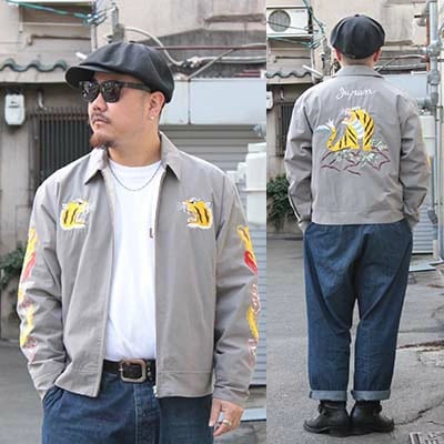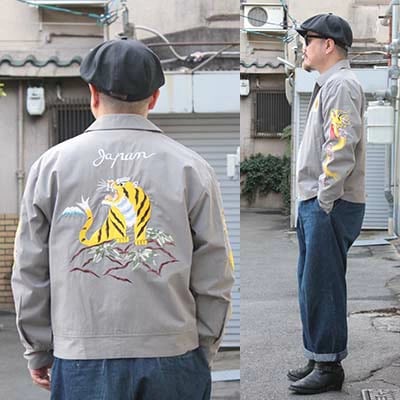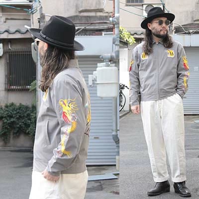 手振りミシンによる職人技が光る、迫力ある刺繍のスーベニアジャケット。