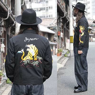 手振りミシンによる職人技が光る、迫力ある刺繍のスーベニアジャケット。