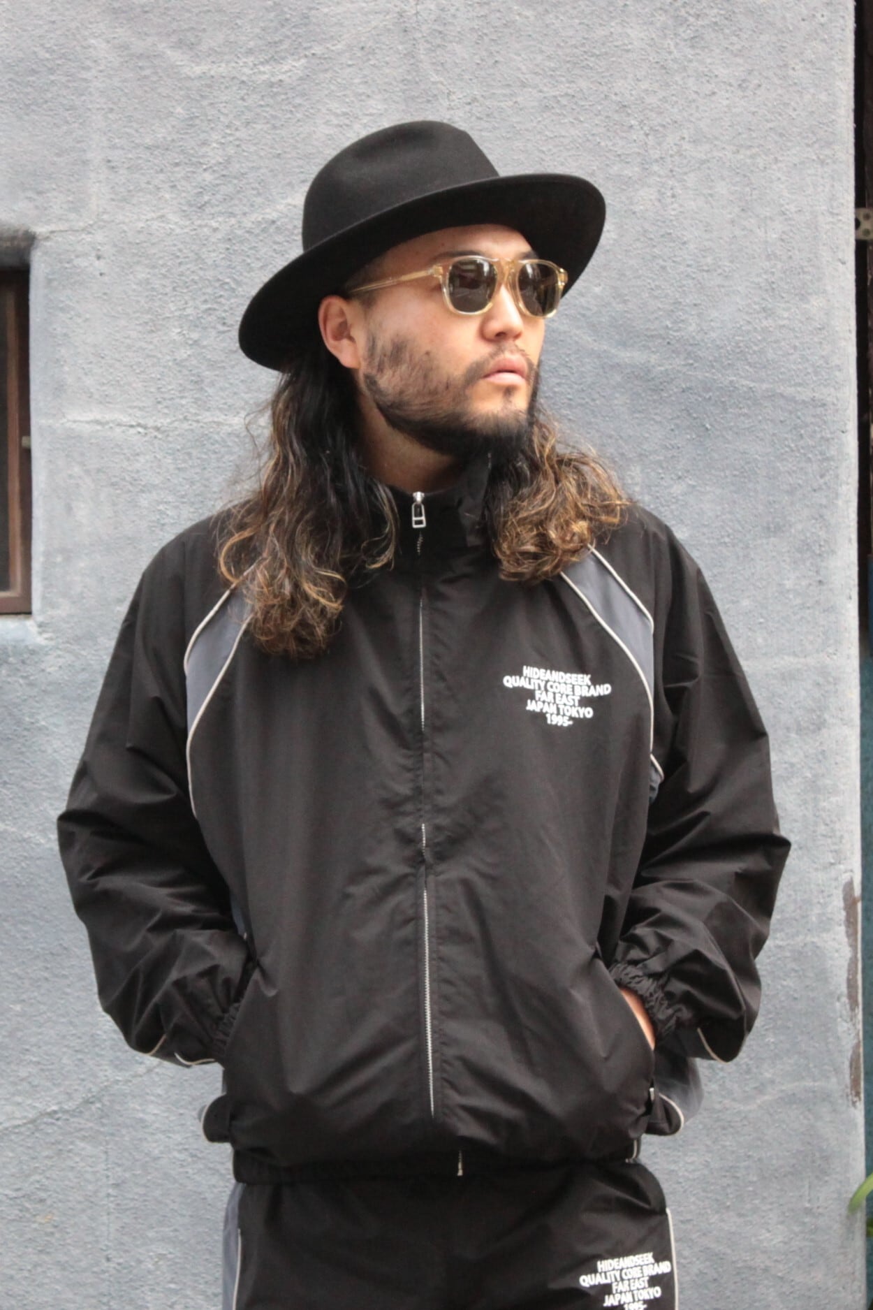 【HIDE AND SEEK】Track jacket(26ss) -BLACK/C.GRAY (ハイドアンドシーク)