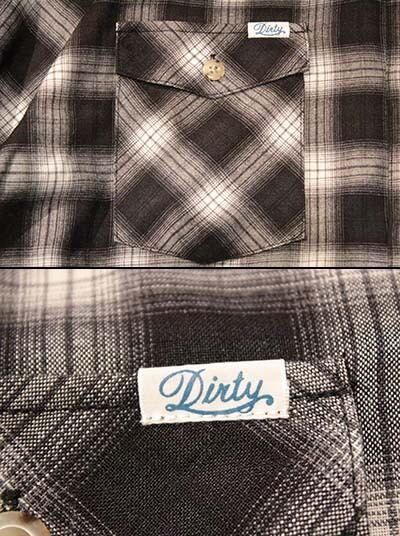 アメリカンカジュアルの定番アイテム、オンブレチェックシャツ。ポリエステル×レーヨンで、繊細に織り上げられたオンブレ柄の生地は、軽やかで滑らかな肌触りが特徴。両胸にはフラップポケットを備えアクセントに「AT DIRTY」のピスネームを配備。 首元はスタンダードなレギュラーカラー仕様でデイリーに活躍する一着。