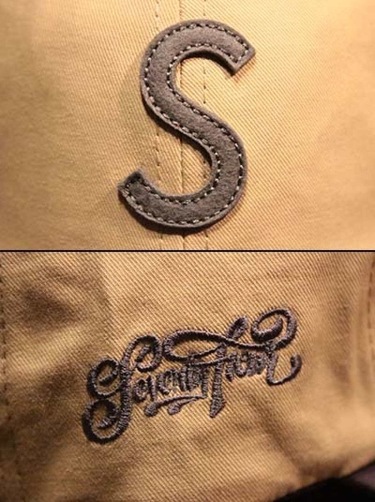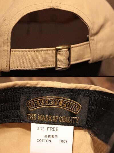 ミッドプロファイル6パネルキャップ. 100%コットンツイルファブリック. フロントに S パッチワッペン. 刺繍アイレット. メタルバックル付きベルトクロージャー. 右サイドにスクリプトロゴ刺繍. 左サイドにSeventy fourスモールラベル.