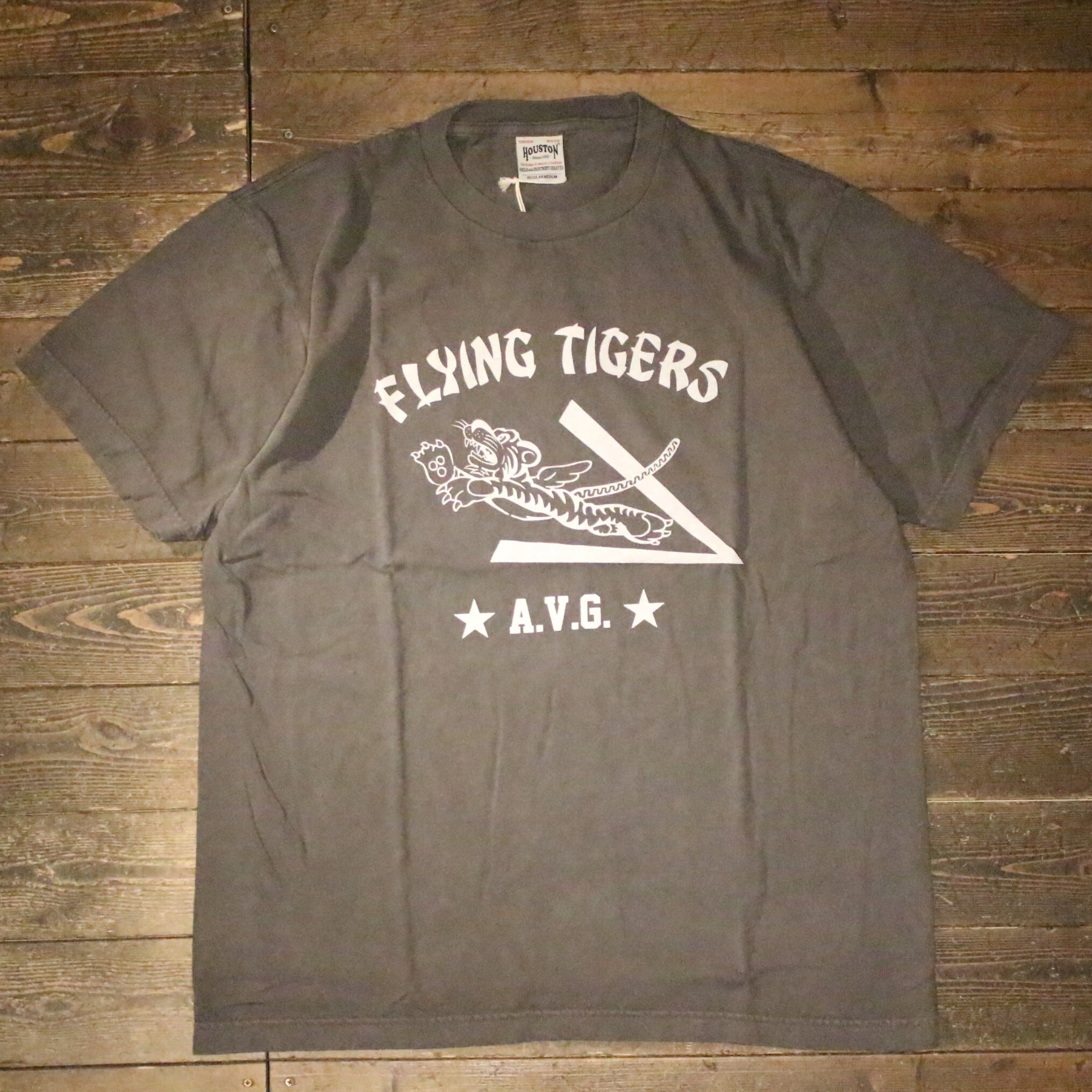 【HOUSTON】22440 PIGMENT PRINT TEE(FLYING TIGERS) -BLACK / ヒューストン