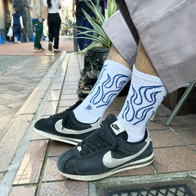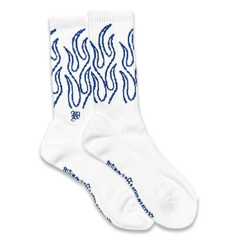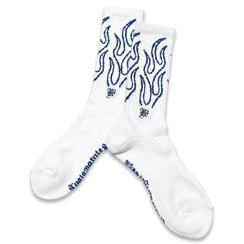 【KUSTOMSTYLE SO-CAL】-FLAMES- CREW SOCKS -WHITE/NAVY (カスタムスタイルソーキャル) 正規取扱店(Official Dealer) Cannon Ball (キャノンボール)