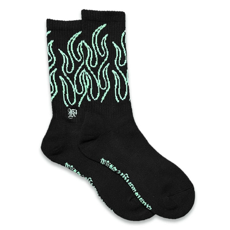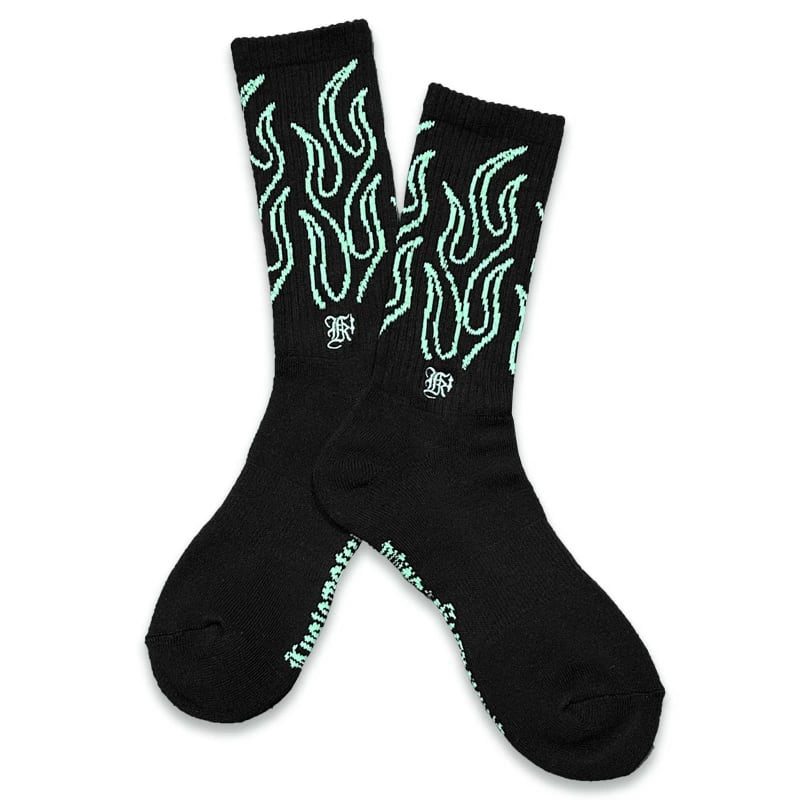 【KUSTOMSTYLE SO-CAL】-FLAMES- CREW SOCKS -BLACK/GREEN (カスタムスタイルソーキャル) 正規取扱店(Official Dealer) Cannon Ball (キャノンボール)