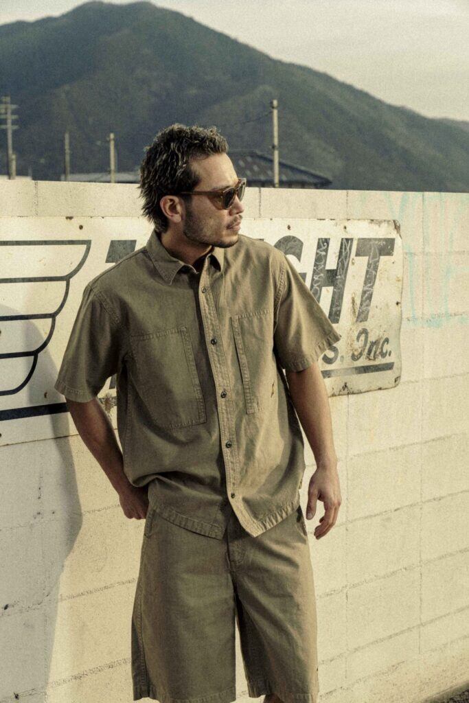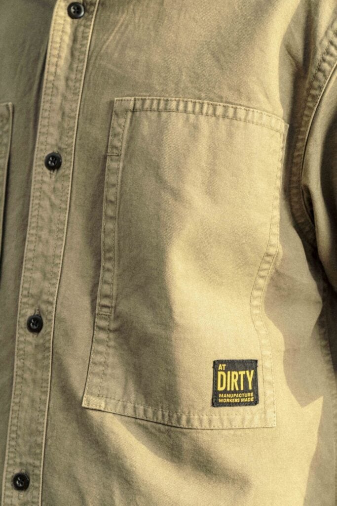U.S. ARMY フィールドジャケットのポケットディテールをベースに、無骨なワークシャツを製作。オーバーダイ加工とストーンウォッシュにより、ヴィンテージライクな風合いを表現。見た目に程よい肉感があり、コットンとレーヨンの混紡素材を使用し強度としなやかさを合わせ持つ。