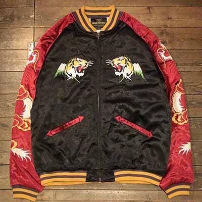 HOUSTON得意のスカジャンが2024年春アイテムへ引き続き展開。今回のタイガー柄は袖身頃にマルーン色を使用した一風変わった珍しい配色です