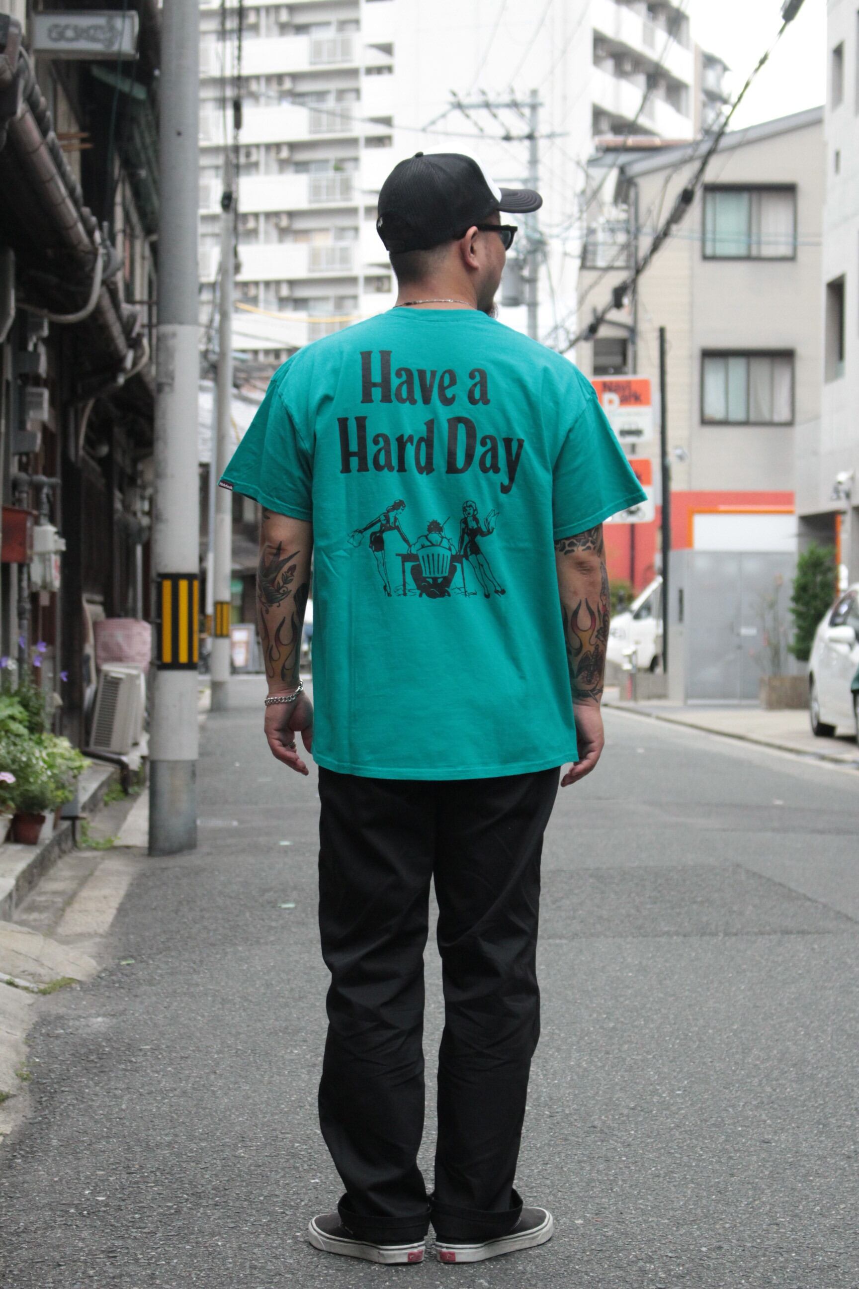 【HIDE AND SEEK】Have a Hard Day S/S Tee(24ss) S-GREEN (ハイドアンドシーク)