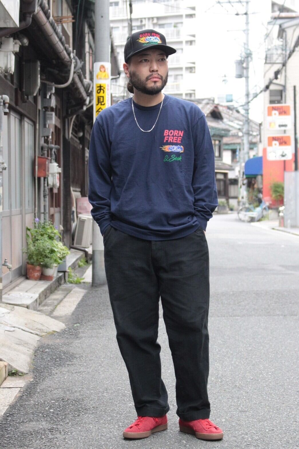 【HIDE AND SEEK】Racing L/S Tee NAVY(ハイドアンドシーク)