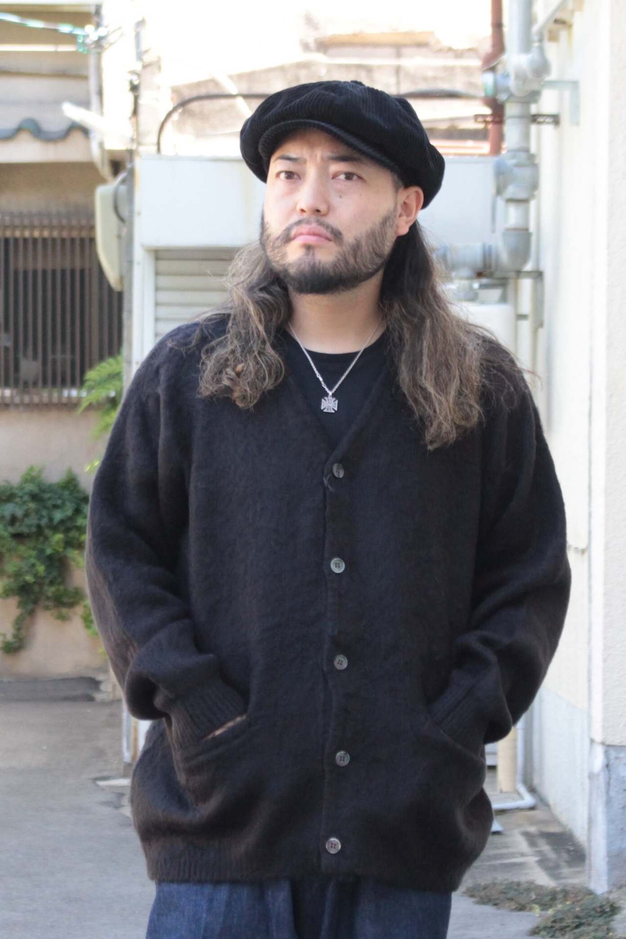 【UNIVERD72】 22326 MOHAIR TOUCH CARDIGAN -BLACK / モヘアタッチ 起毛 カーディガン グランジ