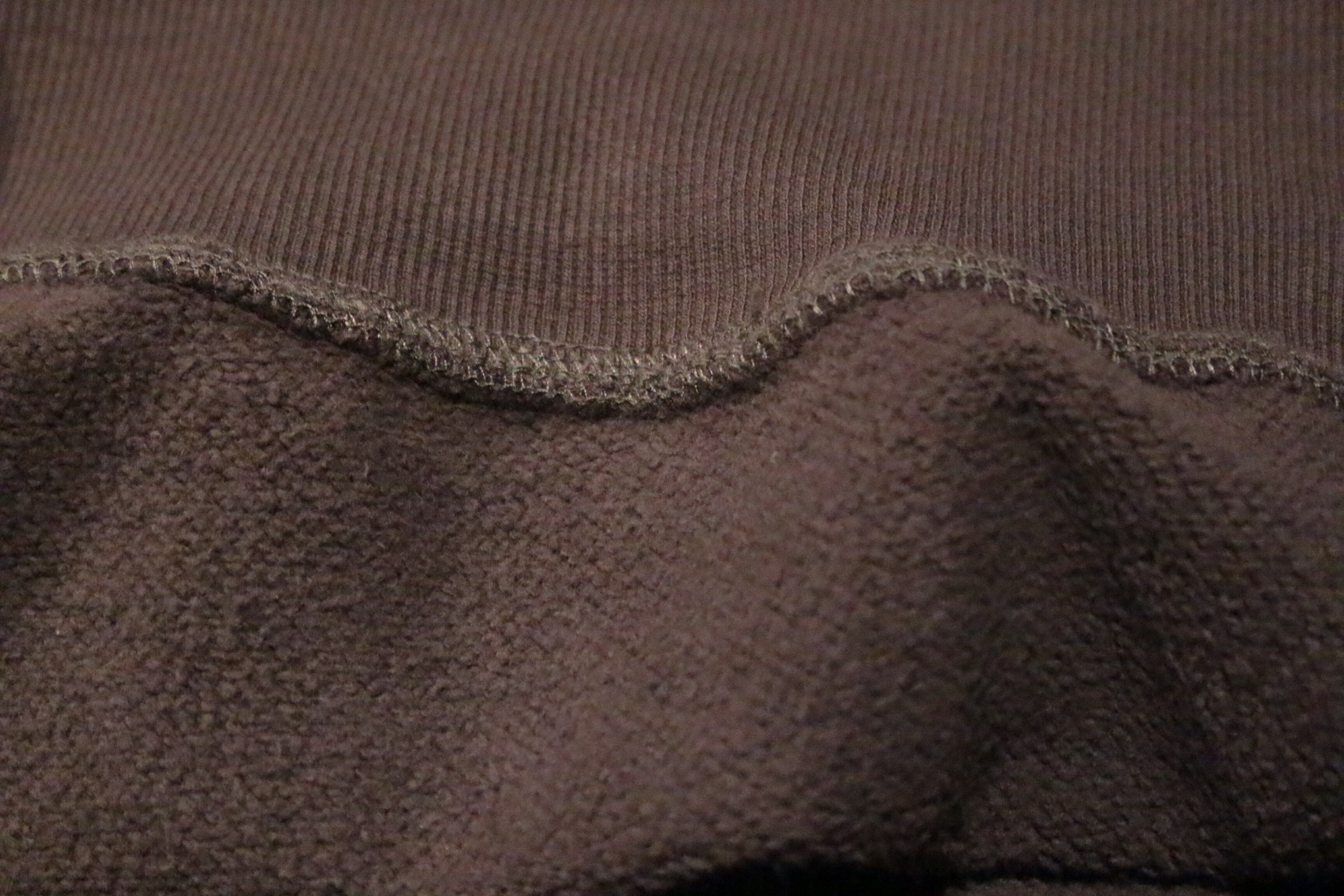 ガーメントダイ(製品染め)を施したクルースウェット。